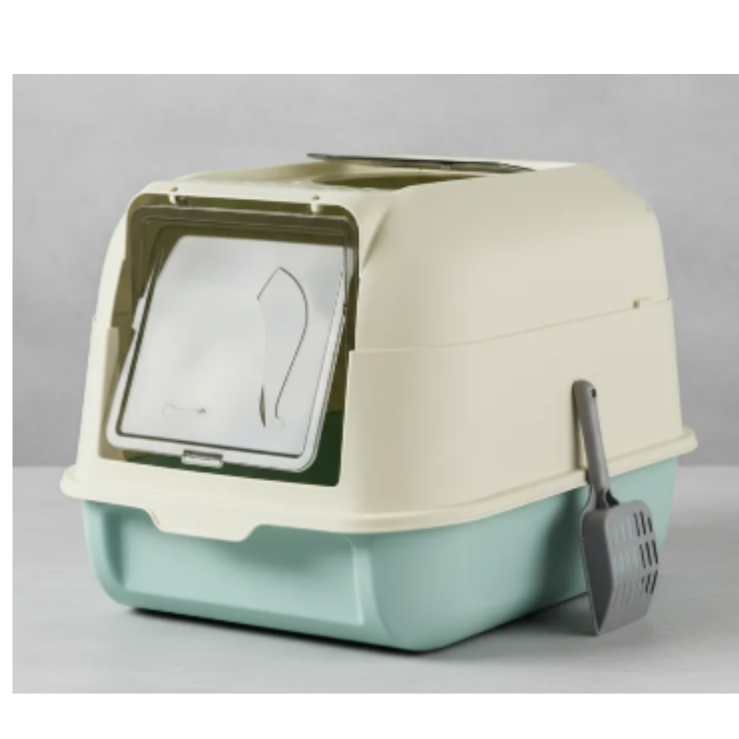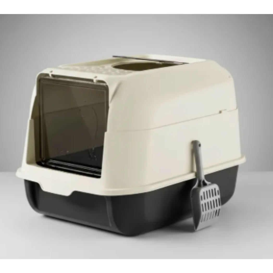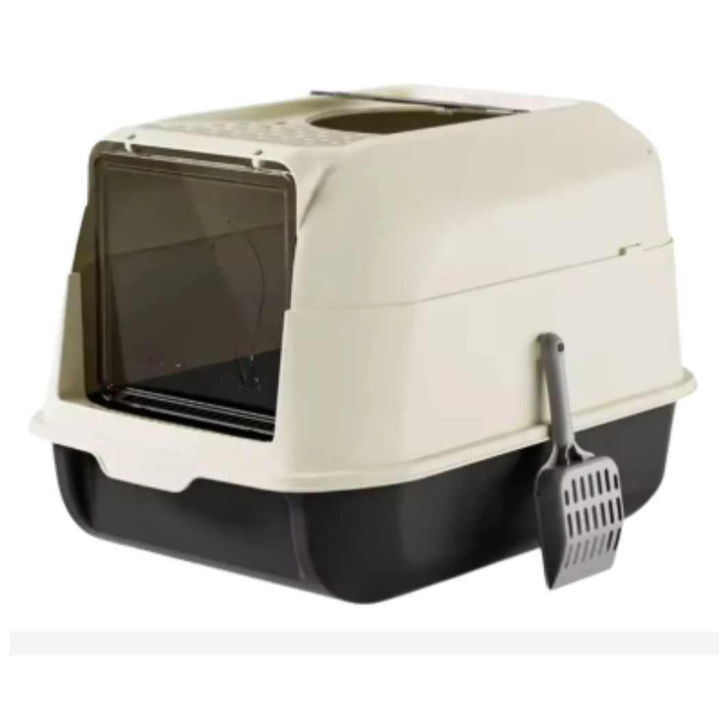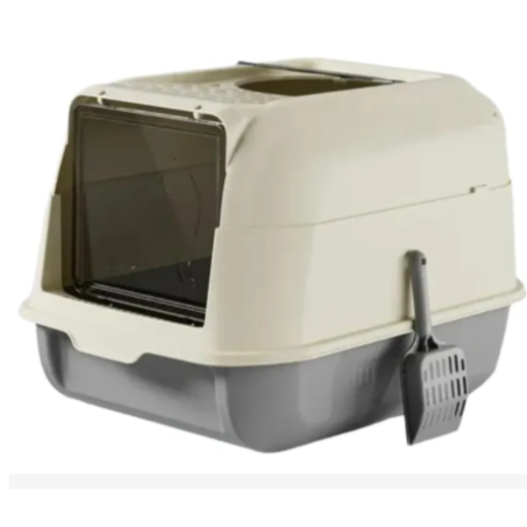 Su diseño cerrado mantiene la arena contenida y ayuda a controlar olores, ideal para mantener tu hogar más limpio y ordenado.
