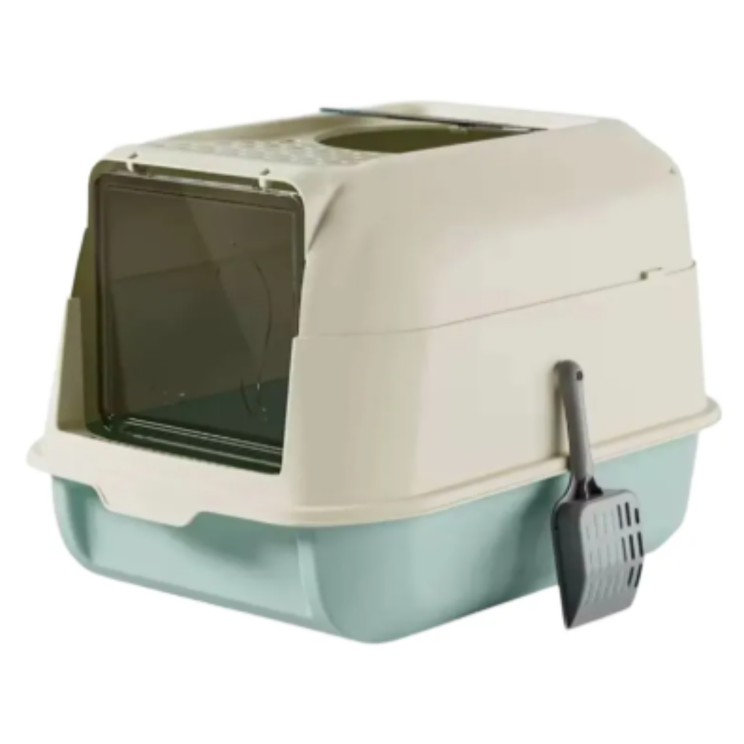 Este arenero cubierto con diseño inteligente ofrece máxima comodidad para tu gato y limpieza fácil para ti. Cuenta con puerta de acceso frontal para que tu gato entre cómodamente y una puerta de salida en la parte superior, que ayuda a reducir el esparcimiento de arena al salir. Además, incluye pala para limpieza, lo que lo hace aún más práctico.