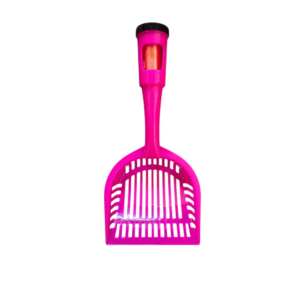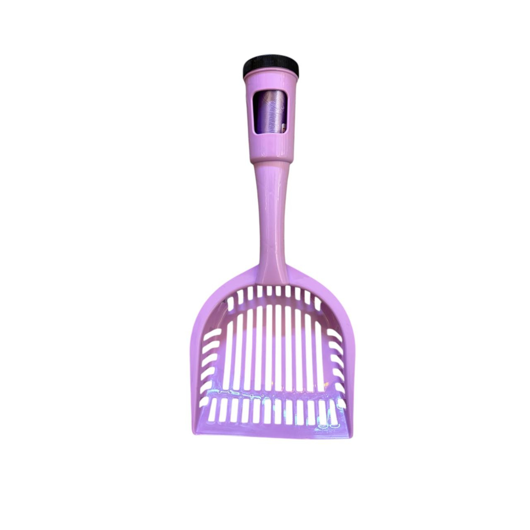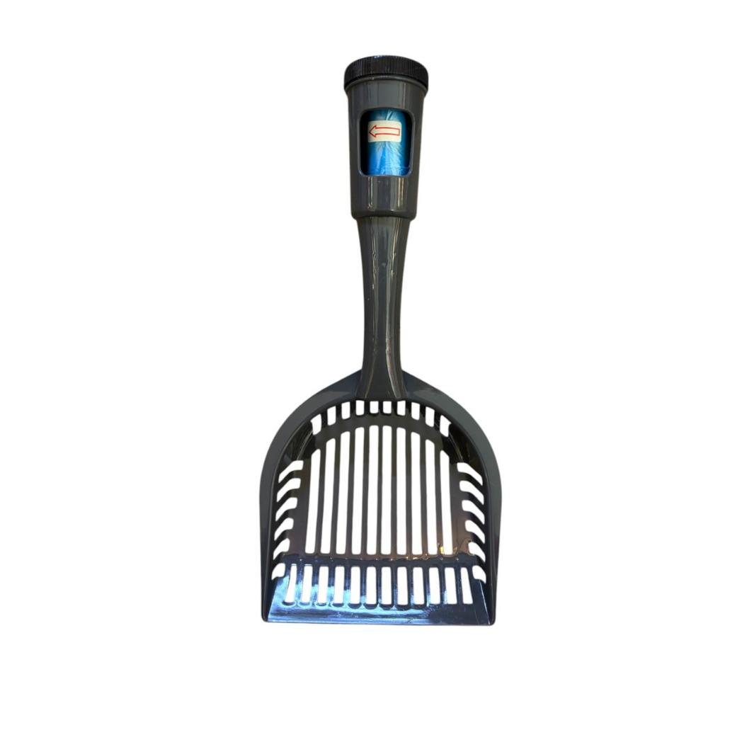 Haz la limpieza del arenero más rápida y cómoda con esta pala 2 en 1 con dispensador de bolsas integrado. Su diseño ergonómico y resistente facilita la recolección de residuos, manteniendo la higiene del arenero de tu gato sin complicaciones. ✨
