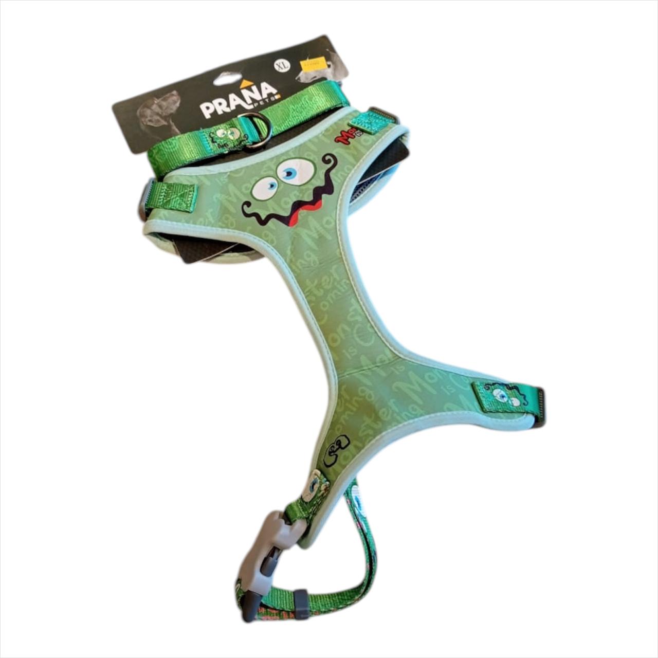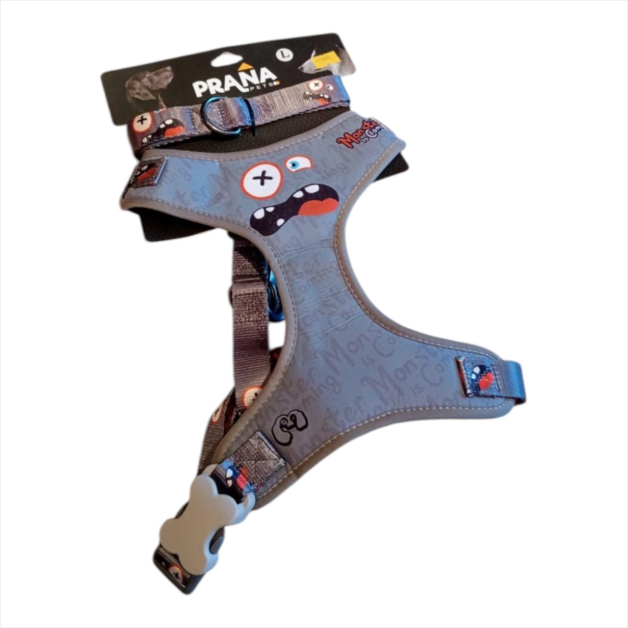 La Pechera Arnés con Traílla es la opción ideal para pasear a tu mascota con total comodidad y control. Su diseño ergonómico y resistente proporciona una sujeción segura, mientras que su estilo único y moderno, con detalles de la temática "Monster", hará que tu peludo se vea increíble en cada paseo.